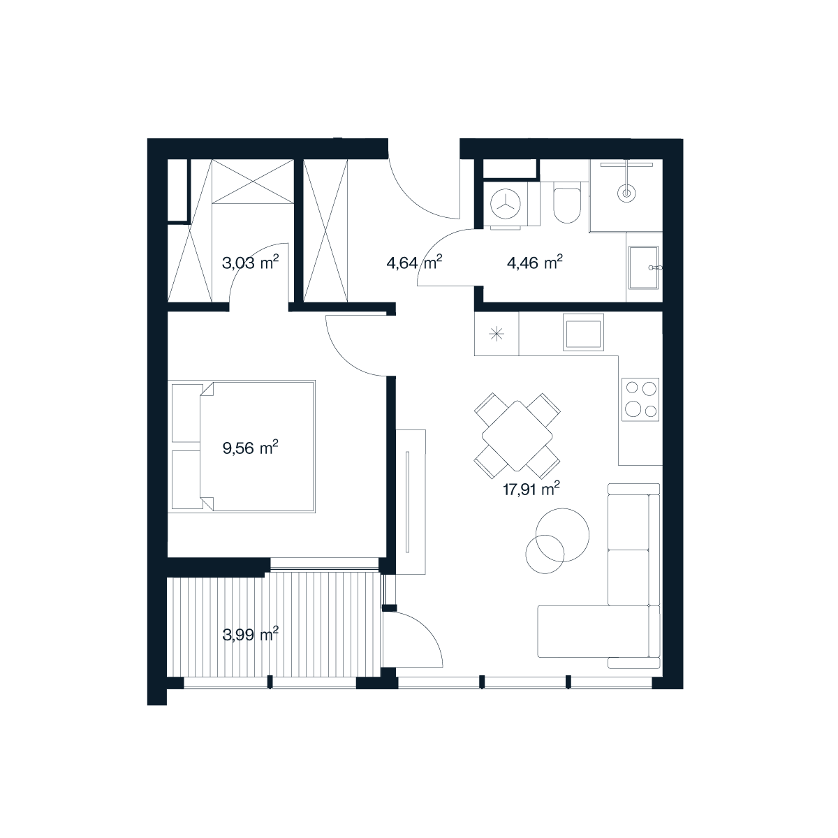 lodžijos plotas3,99 m²